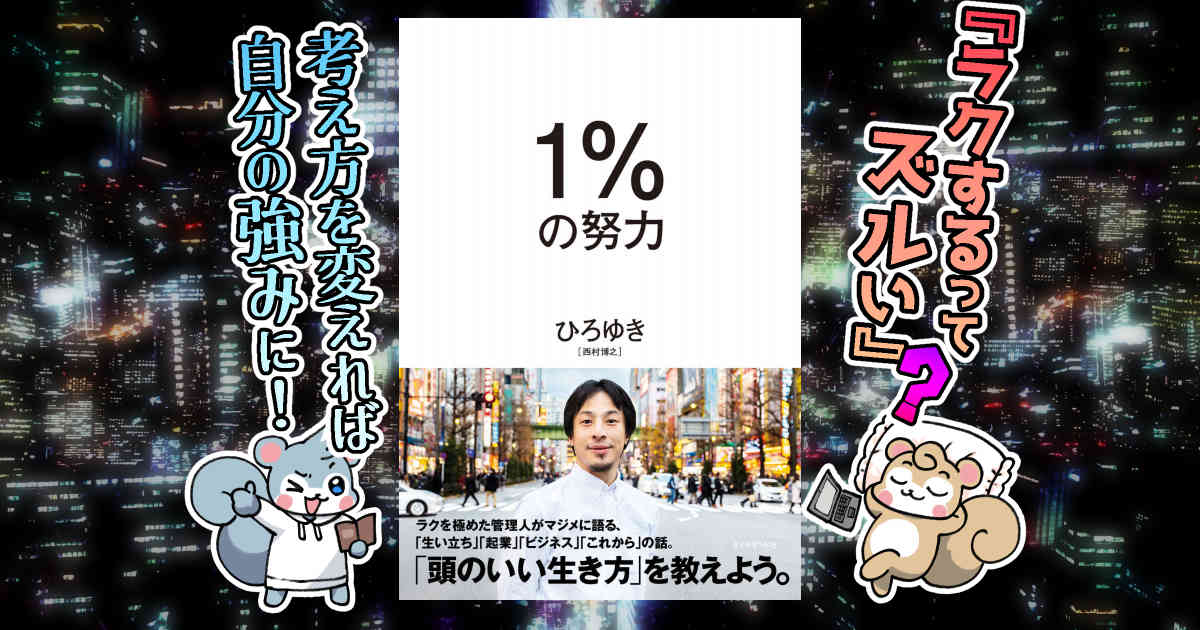- 君は毎日がんばっているのに、思うような結果が出ていないと感じていない?2ちゃんねる創設者のひろゆきが贈る書籍『1%の努力』で、その悩みが解決するかもしれないよ!